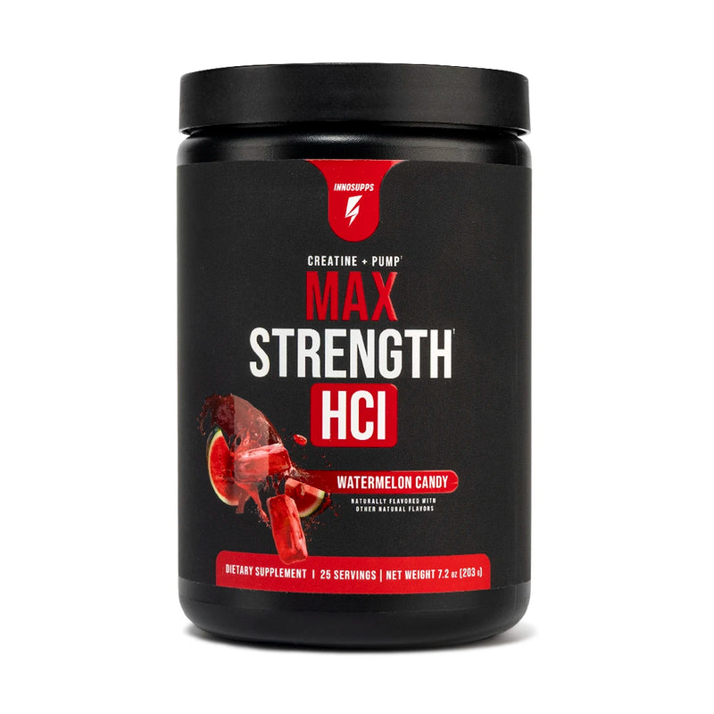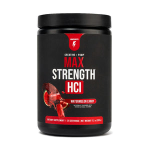 MAX STRENGTH HCl When is the best time to take Max Strength HCl? You can take creatine at any time of the day since it builds up in your system over a certain period of time. However, we do recommend taking Max Strength HCl 30 minutes prior to your workout sessions since there are several other ingredients that help supercharge performance and “the pump” during your gym session. How is Max Strength HCl different from other creatine supplements on the market? Max Strength HCl differs from our extremely popular product Max Strength because it contains creatine HCl rather than creatine monohydrate. Although creatine monohydrate is the most extensively studied source of creatine on the market, it is known to cause water retention. Many users prefer the effects that they get from taking creatine HCl over creatine monohydrate. It really just comes down to preference, but both are amazing products for building lean muscle, supercharging strength and enhancing daily performance. -
