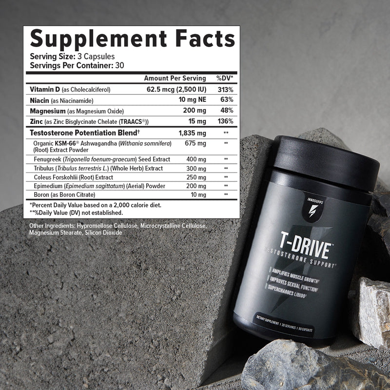 T-Drive™ is nature-based supplement that helps stimulate testosterone and vital hormones from within. We believe that men will see AMAZING RESULTS when given the correct stimulus and building blocks of herbs, vitamins and minerals to enhance male vitality.