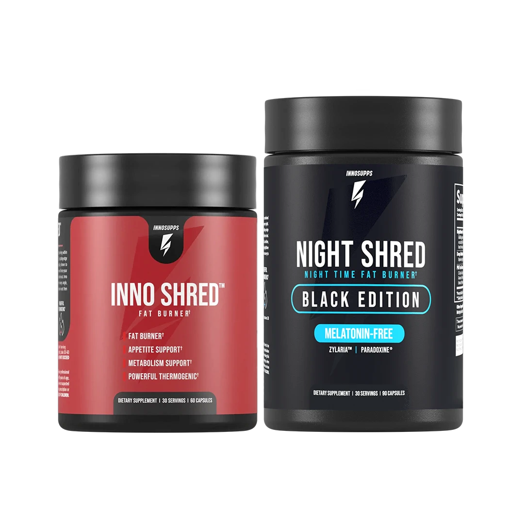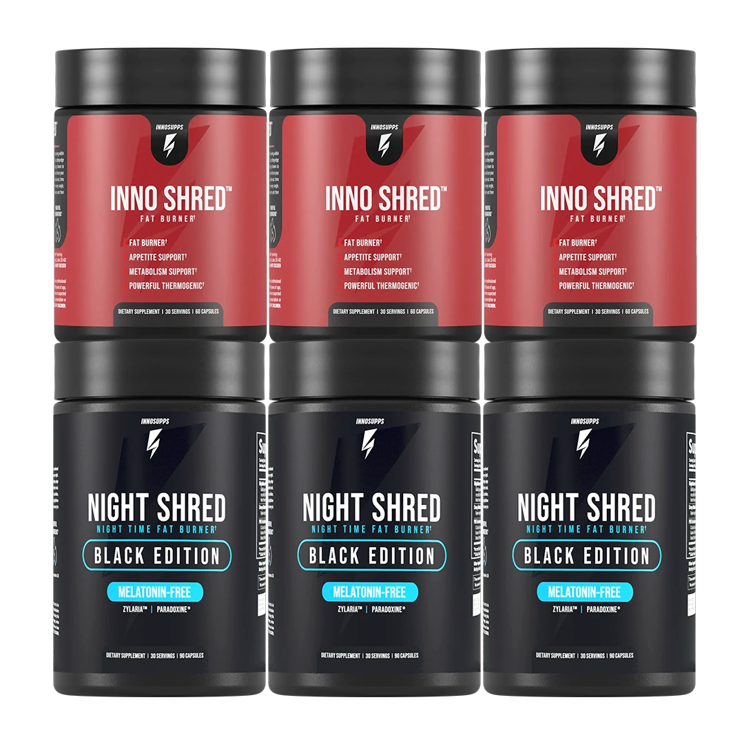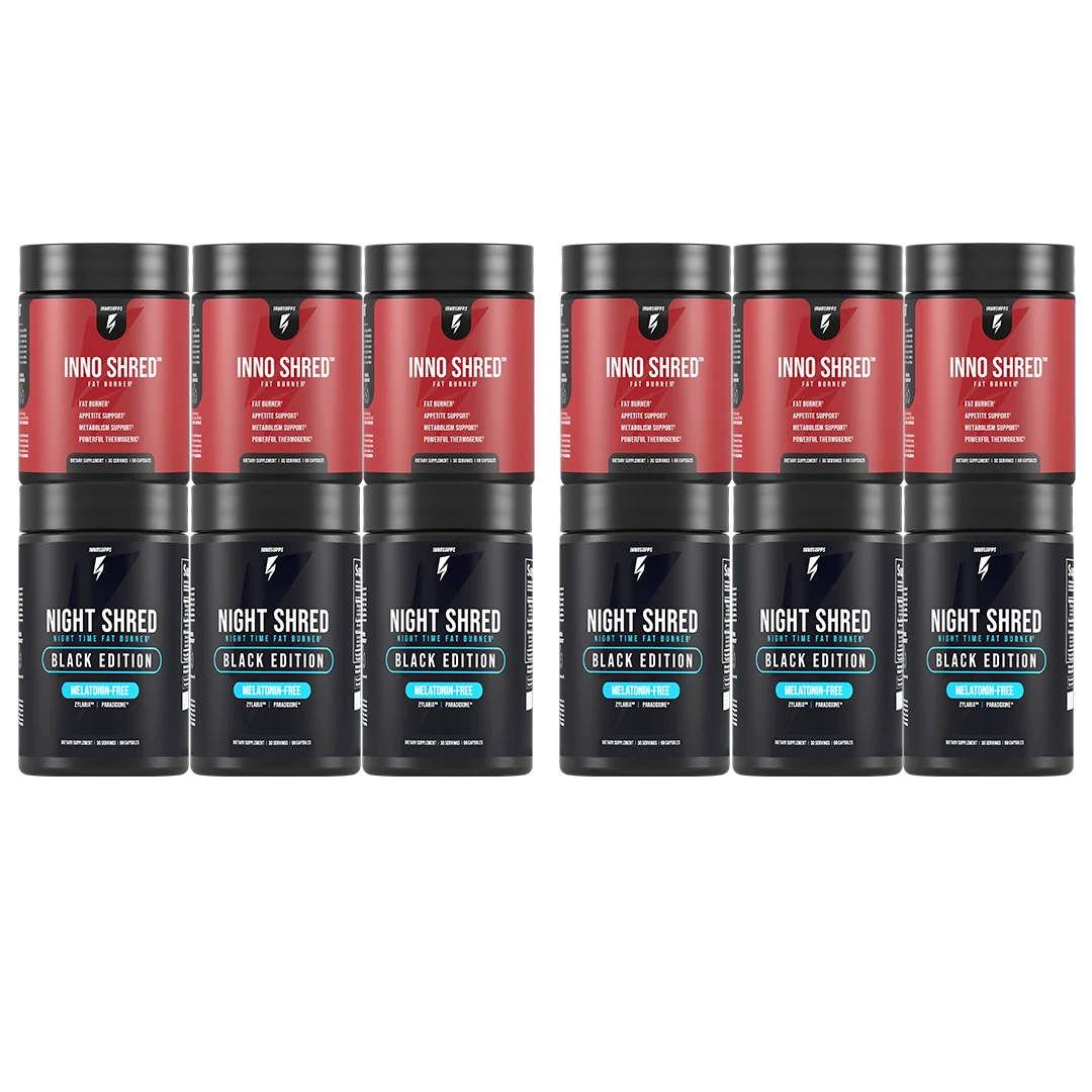 The AM/PM Thermo Stack is a powerful fat-burning duo designed for around-the-clock results. Featuring Inno Shred and Night Shred, these best-selling thermogenic fat burners provide ultimate fat loss from day to night.*