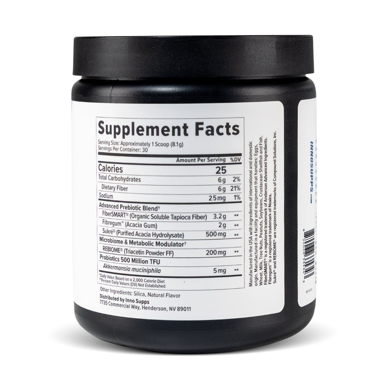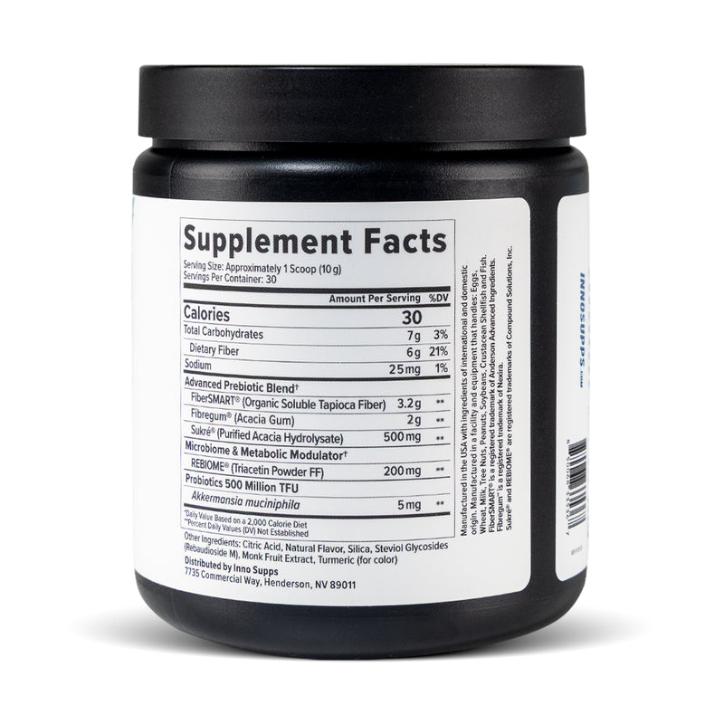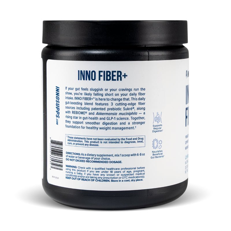 This is the most common concern we hear, and for good reason. Many fiber supplements cause significant bloating and gas. Inno Fiber+ is specifically formulated to avoid this. Our primary fiber source, FiberSMART®, We also use Fibregum® (acacia gum), which has a slow fermentation profile that produces significantly less gas than other prebiotics like inulin. That said, if you're new to fiber supplementation, we recommend starting with half a scoop for the first 3-5 days to let your gut adjust.