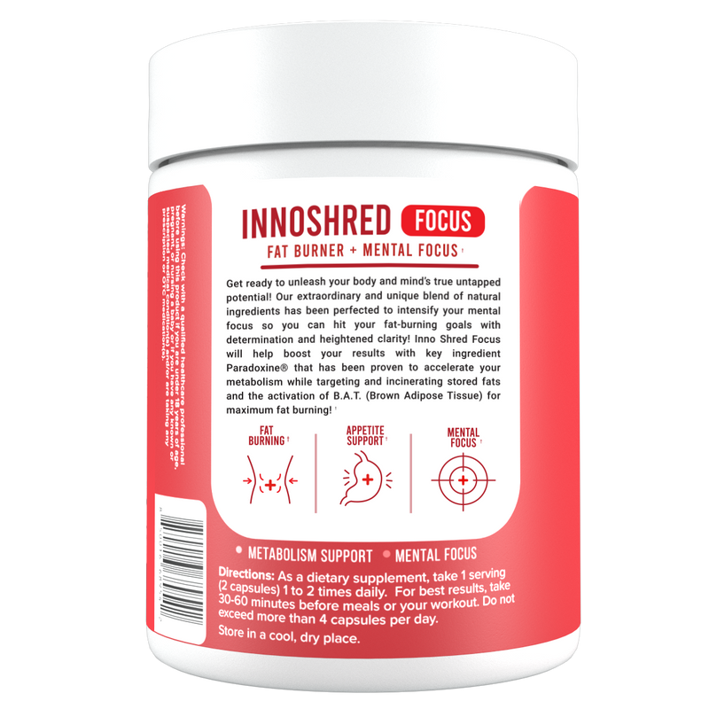 Burning Fat, improving the metabolism, and helping mildly curb your appetite is exactly what Inno Shred Focus is designed for. Our formula contains extremely effective fat burning and metabolism igniting ingredients. We can’t wait to hear about your results after you try it.*
