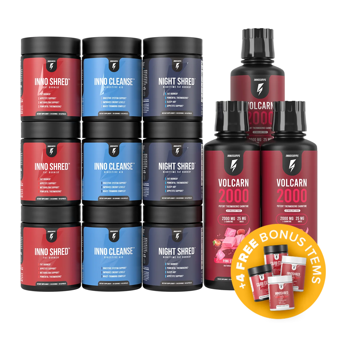 You don’t have to take each product, however we do recommend this stack because it supports fat-burning in different ways, but stacking them you’ll maximize results. Inno Shred™ and Volcarn 2000 fuel thermogenesis and metabolism, Night Shred™ optimizes fat-burning while you sleep, and Inno Cleanse™ helps eliminate waste and combats occasional bloating for a leaner look.*