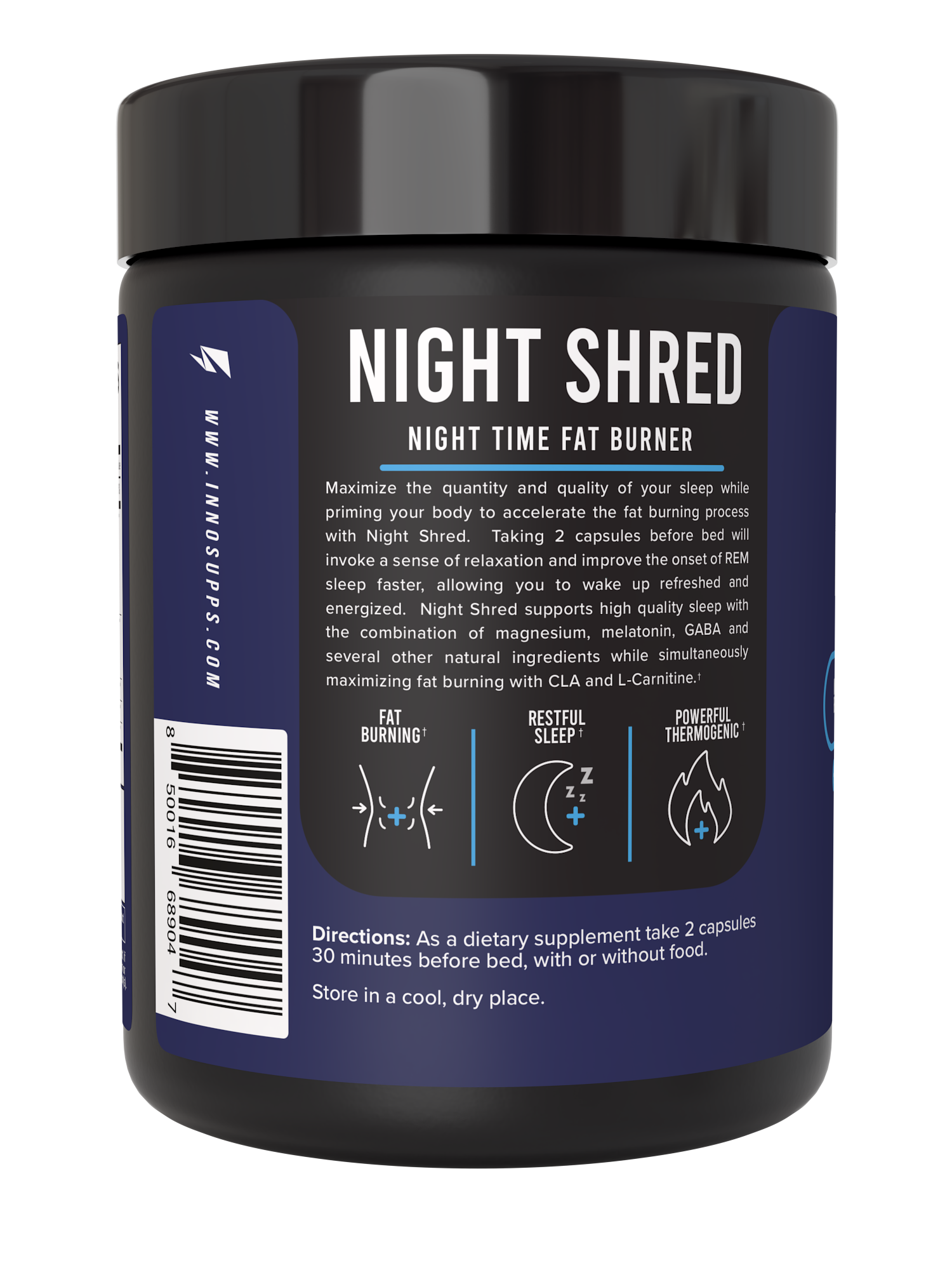 Night Shred allows you to ​wake up refreshed and energized​, ready for the day and to kill your workout. Night Shred supports high quality sleep with the combination of magnesium, melatonin, GABA and several other natural ingredients while simultaneously maximizing fat-burning with the much-studied CLA and L-Carnitine.