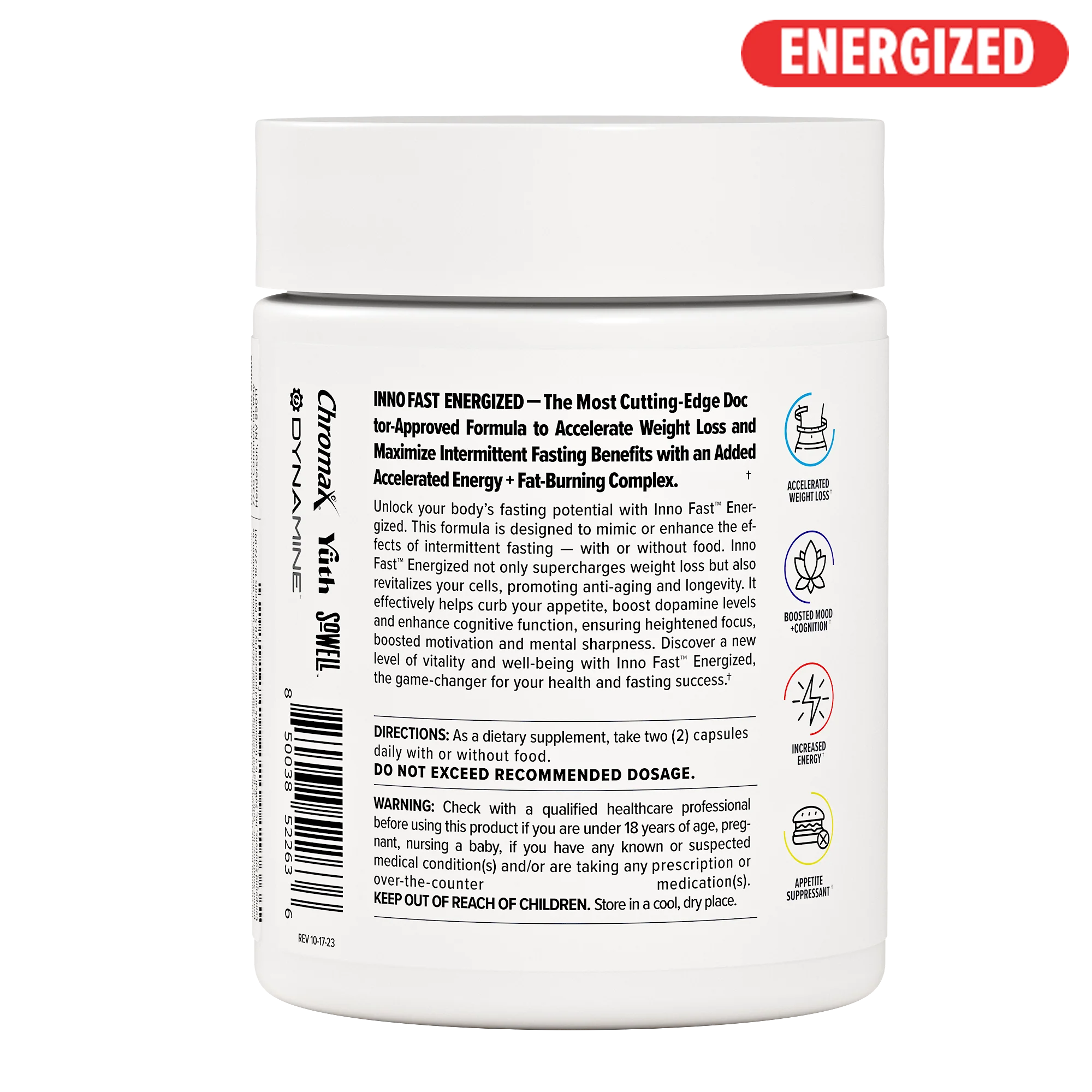 With Inno Fast, your fasting journey gets an incredible boost, so you can achieve extraordinary results in minimal time! By integrating Inno Fast into your fasting routine, you're not just getting a leaner, more shredded physique, but also reversing signs of aging, supercharging cognitive function, ramping up dopamine production, skyrocketing your energy levels, and much more. And, if you are new to intermittent fasting, Inno Fast will help curb cravings so you can practice your fast without the worry of lengthy starvation!*