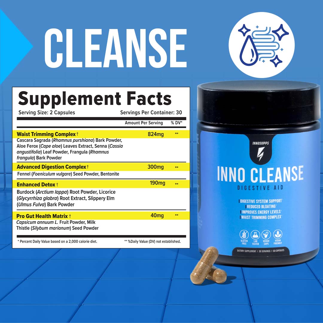 Inno Cleanse can significantly improve digestion. You will notice more frequent bowel movements while taking it and much more regular bowel movements for up to 2 weeks after.