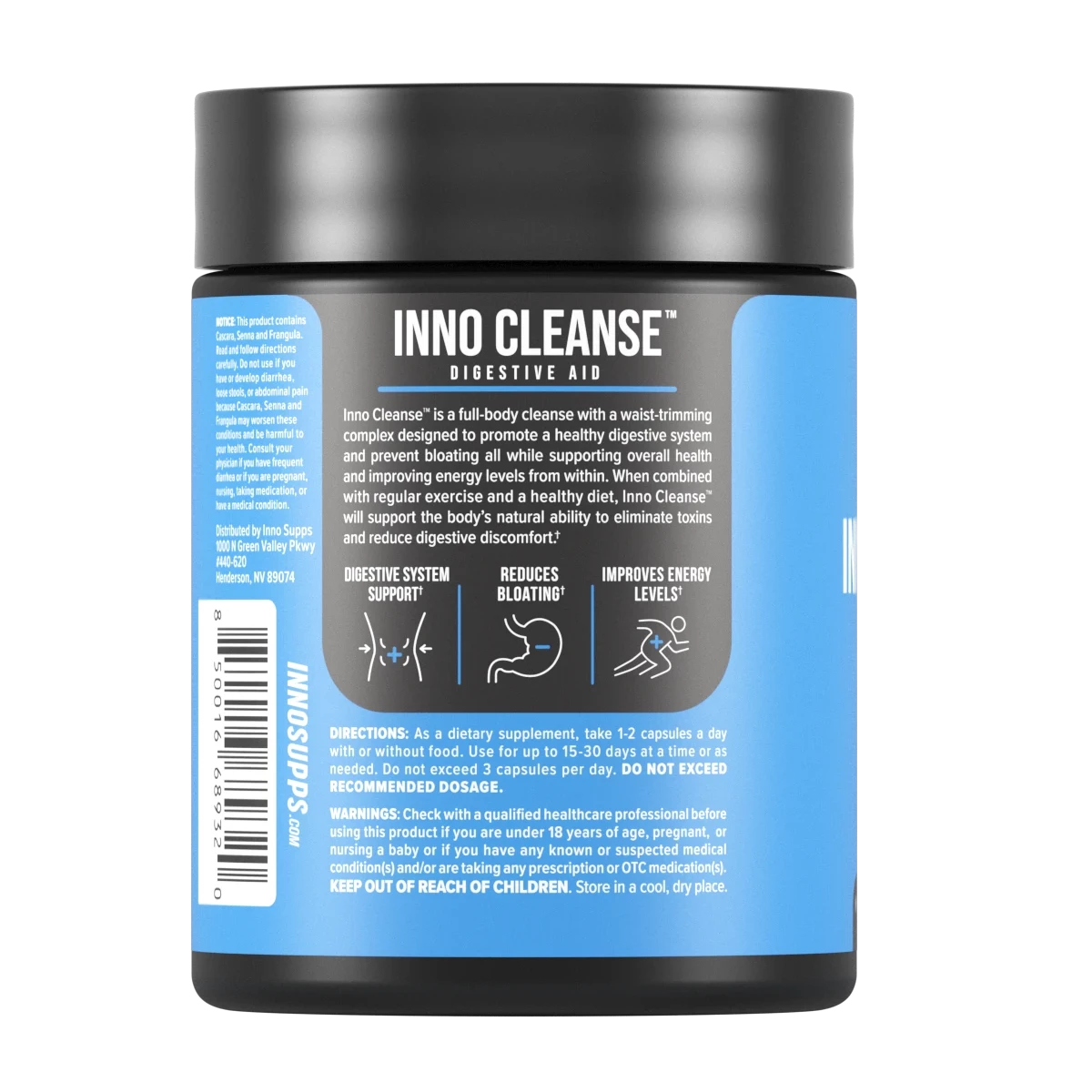 Inno Cleanse uses natural ingredients to safely cleanse the body from the inside out. You can expect your "excretions" to be much larger and bulkier than normal. Inno Cleanse is considered a natural laxative, without the watery or diarrhea effects.